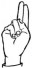 На ћирилици написано ПЕРИША ЋУШИЋ састоји се из 11 слова [?]. Исписано ћириличном једноручном азбуком за глувонеме: